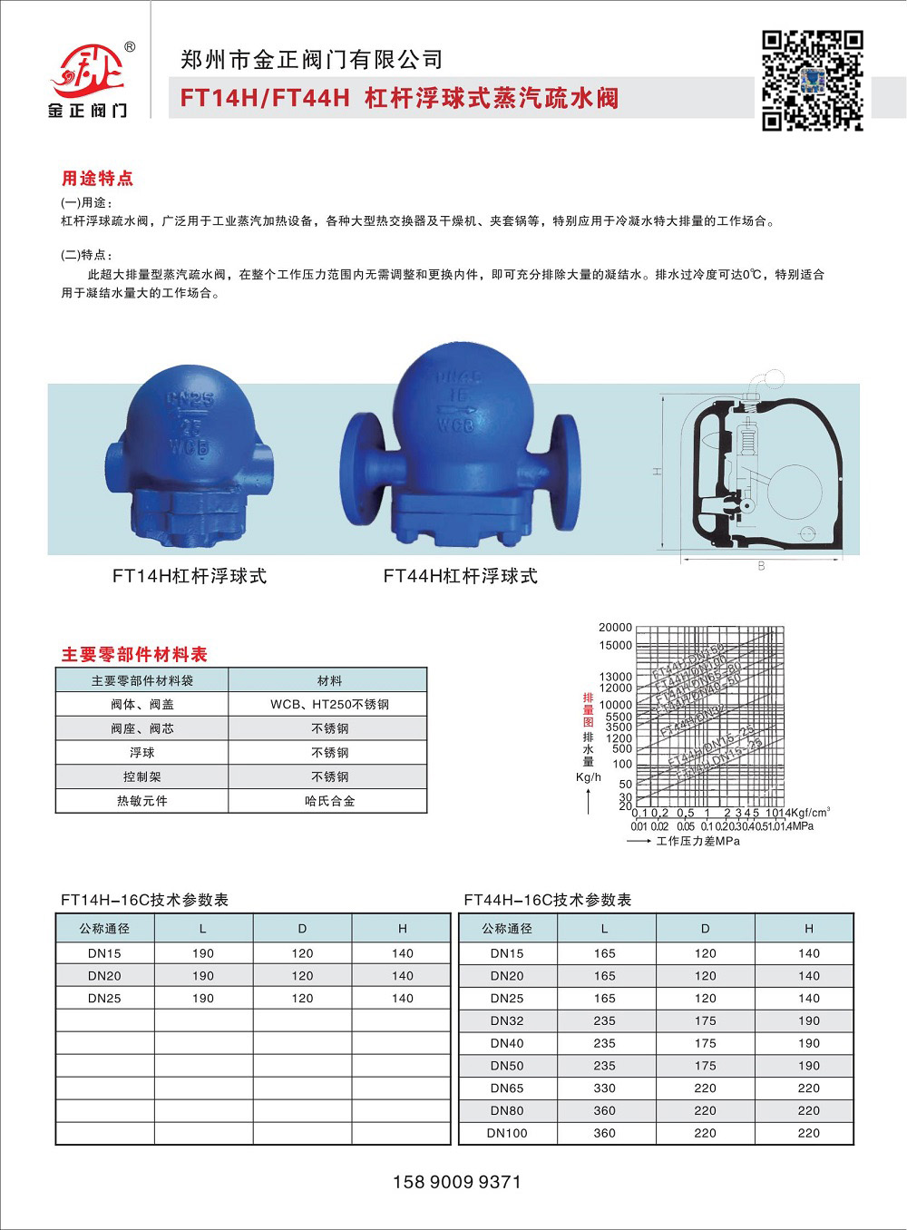 (一)用途∶杠杆浮球疏水阀,广泛用于工业蒸汽加热设备,各种大型热交换器及干燥机、夹套锅等,特别应用于冷凝水特大排量的工作场合。